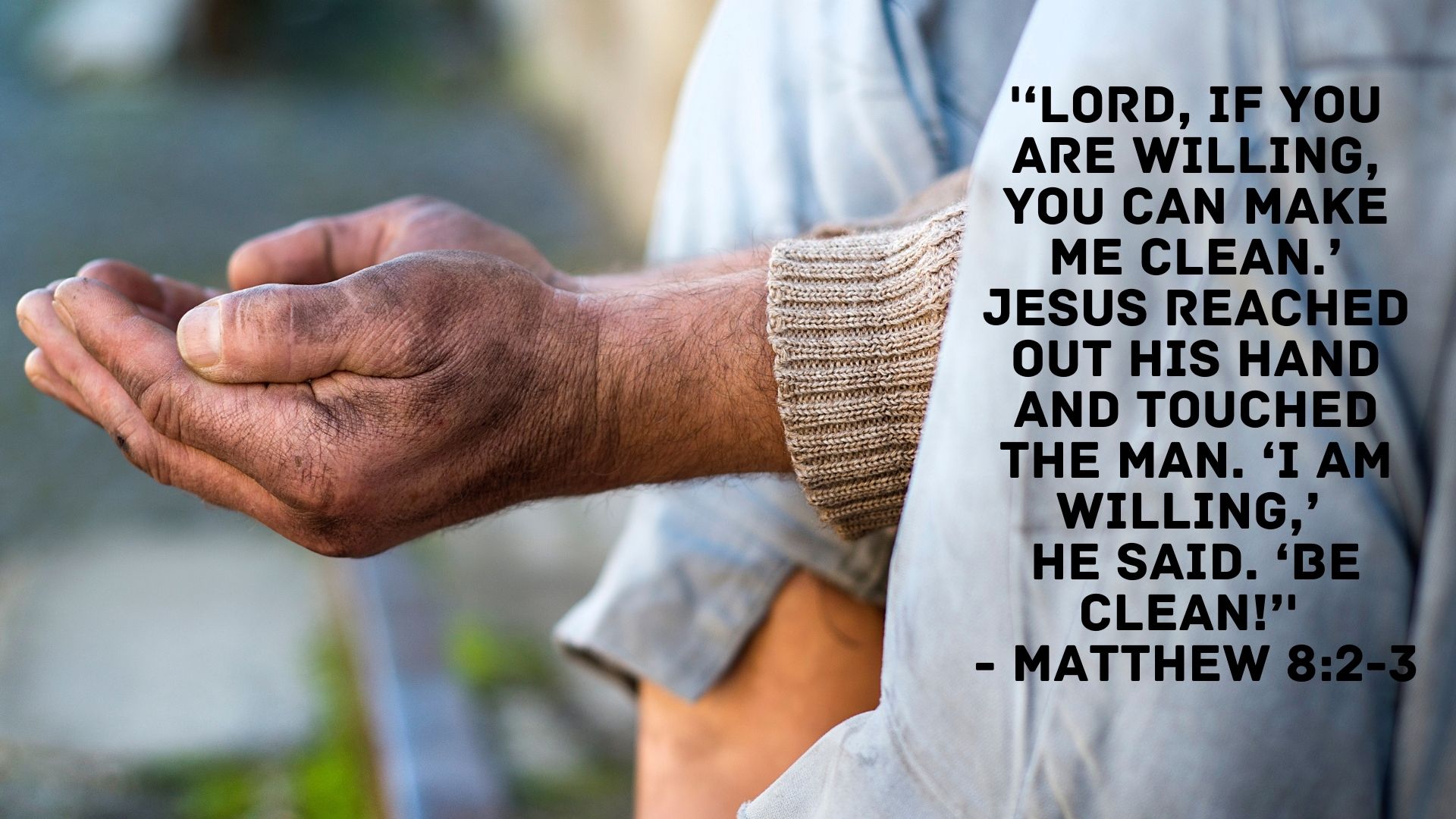 Jesus reached out his hand and touched the man. ‘I am willing,’ he said. ‘Be clean!’’ Matthew 8:2-3