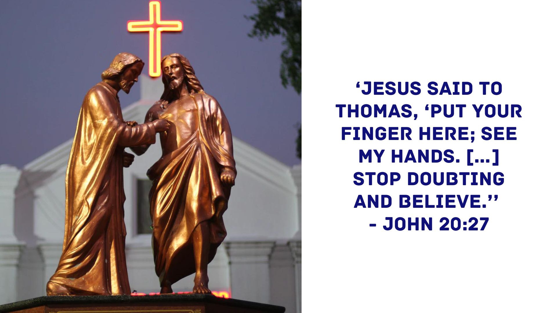 Jesus said to Thomas, ‘Put your finger here; see my hands. […] Stop doubting and believe.’ John 20:27