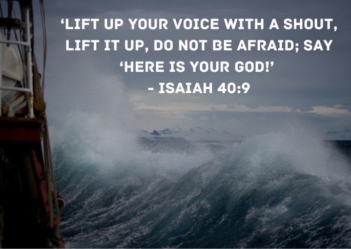 ‘lift up your voice with a shout, lift it up, do not be afraid; say ‘Here is your God!’ Isaiah 40:9 ‘Land ho’ cries the ships watchman excitedly, ‘Land ho’. You’d taken passage on a ship which promised the most amazing destination you could possibly imagine! The sight of land is what you have been watching … Continue reading The Fourth Sunday in Advent – Reflection